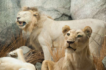 Male and Female Lion Sitting on a Rock in zoo in chicago