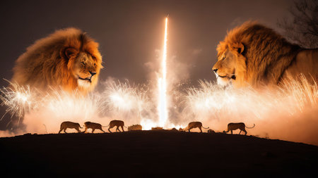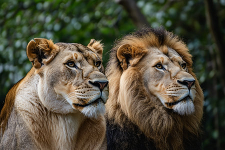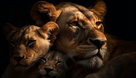Lion and lioness, an animal family, captured in a dark portrait, showing the regal beauty of these untamed creatures in the wild