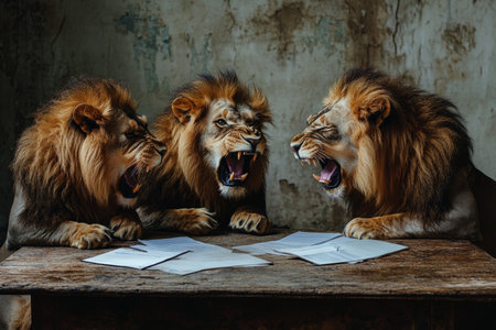 Lions engaged in a heated discussion during a business meeting a unique wildlife encounter