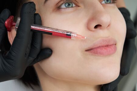 beautiful woman rejuvenation facial injection cosmetic procedures close-up