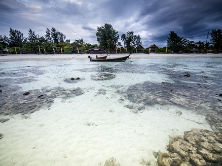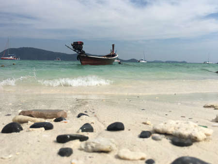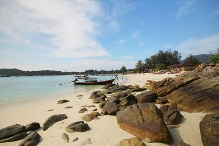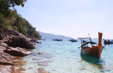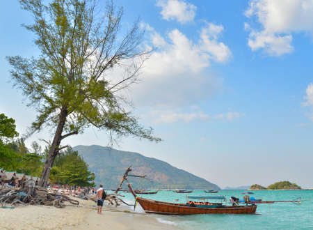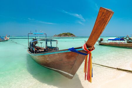Traditional Thai Long-tail boat on the beach, at lipe island.