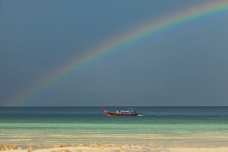 Colorful rainbow over a Tropical beach of Andaman Sea