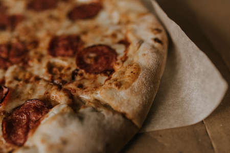 Italian pizza New-York slice fast food hot crunchy fresh tasty meal salami tomato mozzarella dinner restaurant bistro pepperoni homemade lunch snack pizzeria italy dough traditional rustic ingredients
