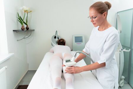 Beauty treatment of a young woman in specialized clinic. Body shaper