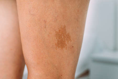 Large birthmark on the leg of a caucasian person