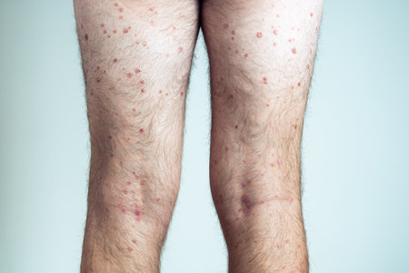 A close up of a persons leg with red bumps on it, AI