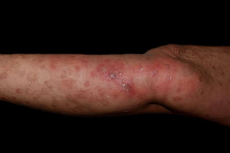 Close up macro poison ivy rash blisters on human skin