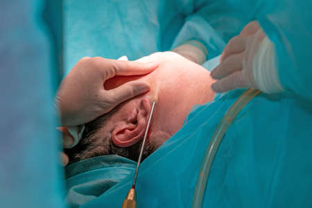 Plastic surgery in operating room. Circular face lift