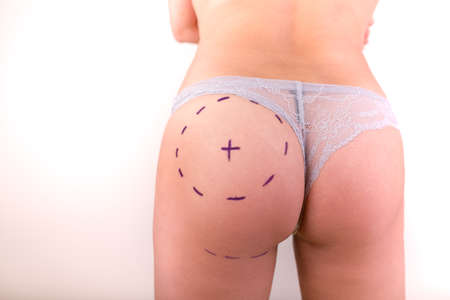 Doctor draws marks on the patients buttocks with marker for body shaping