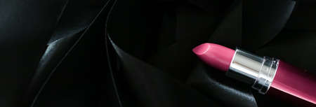 Pink lipstick on black silk background, luxury make-up and beauty cosmetics
