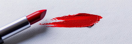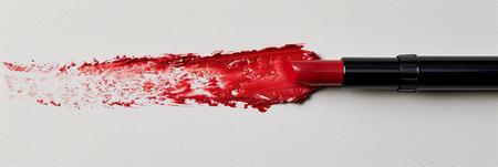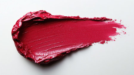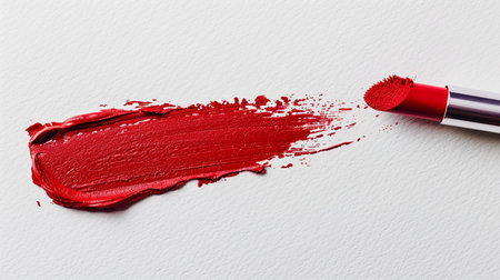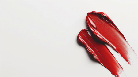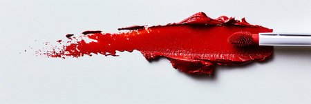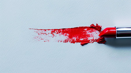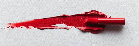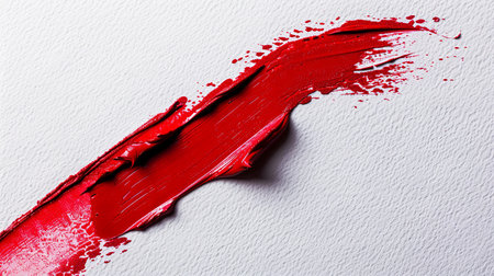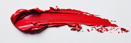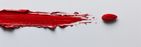 A close-up of a vivid red lipstick smudge on a pristine white surface, conveying a sense of artistry and creativity.