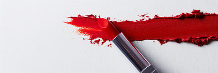 A bold red lipstick leaves a striking swatch line on a white surface, showing classic elegance and vibrancy.