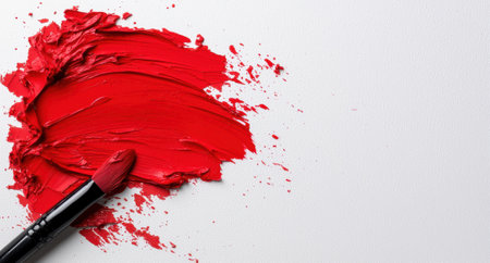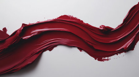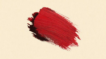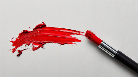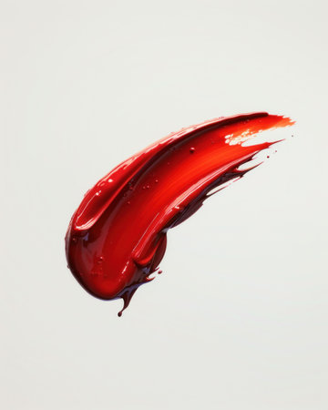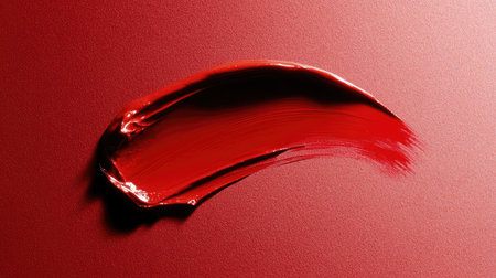 A bold red paint smear is created using a brush on a light background. The texture and movement of the brushstroke form an artistic display of color and design.