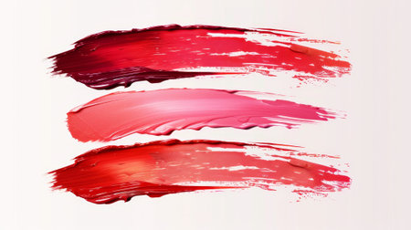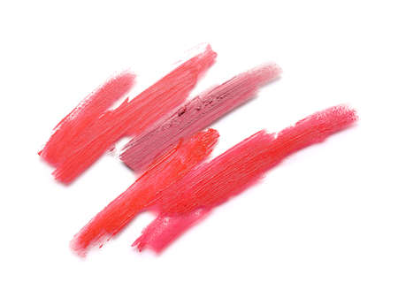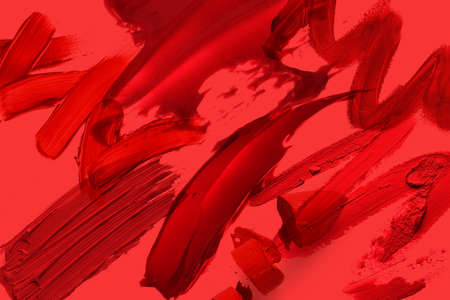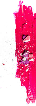 Lipstick or blusher abstract strokes smudges background texture multi colored red blush isolated on white background