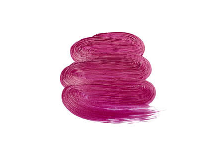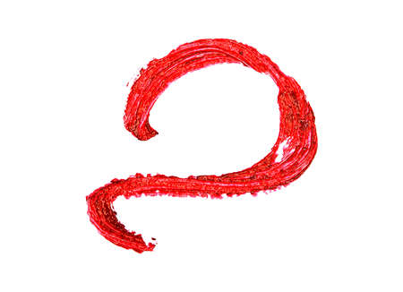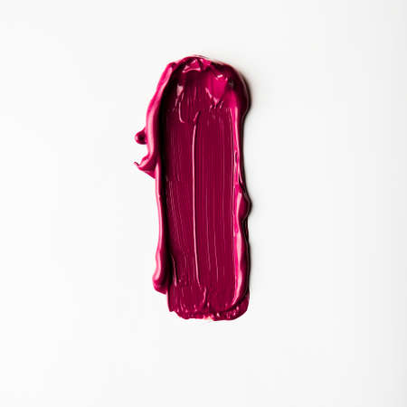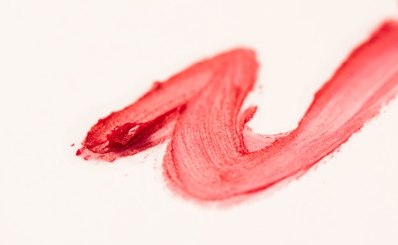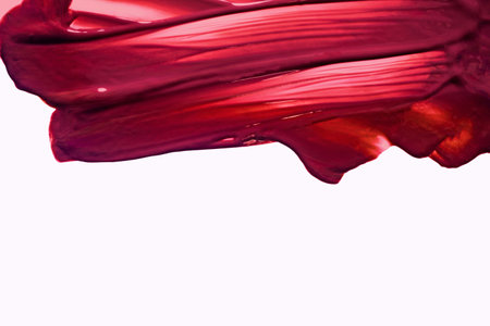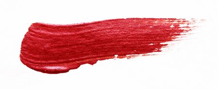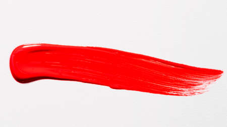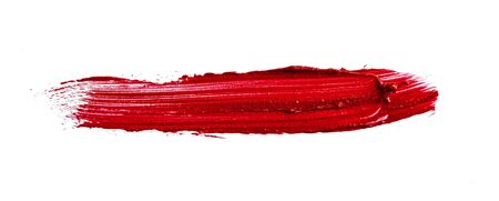 Red stroke brush lipstick or paint on white empty background. Cosmetics or acrylic stains for decoration and design.