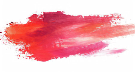Textured swipe of bright red acrylic paint isolated on a clean white surface