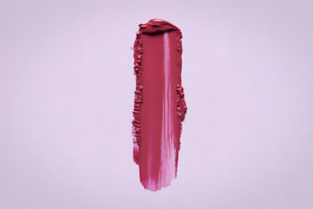 Close-up view of a lipstick smudge on a pristine white surface, showing the vivid color and texture of the makeup residue