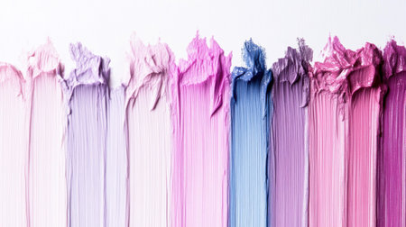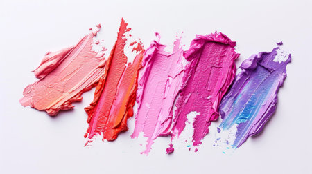 Top-view image featuring isolated pastel lipstick smears on a white background, copy space for text
