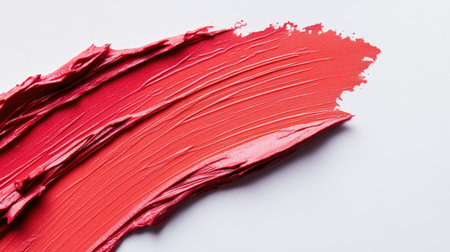 Red cosmetic product, possibly lipstick or cream, is smeared on a white textured background, creating a vibrant and textured swatch showcasing its color and consistency