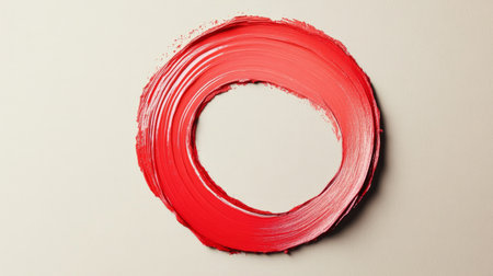 Lipstick stroke forming a circle, bright coral tone generative ai