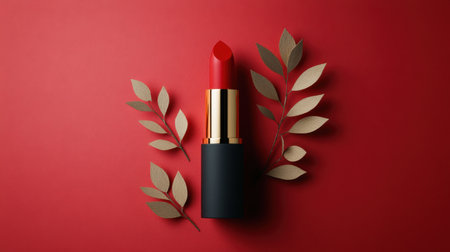 Iconic symbol of femininity, a luxury red lipstick against a red background