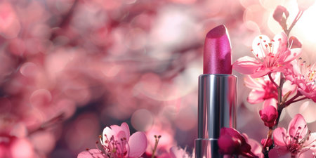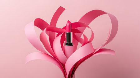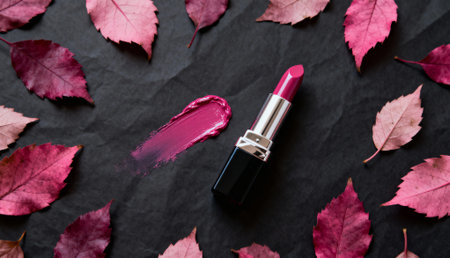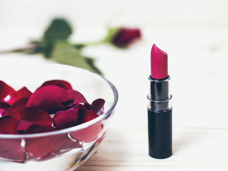 pink lipstick and roses petals
