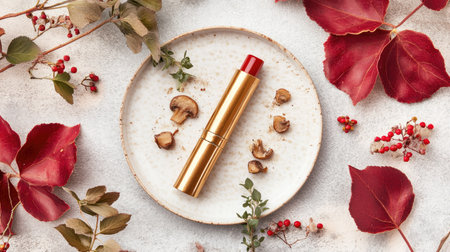 Red lipstick, makeup product and luxury cosmetic