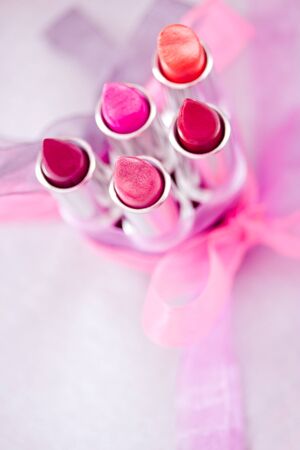 a set of lipsticks/lipglosses with decorative bows