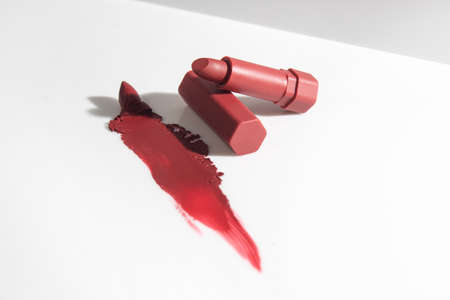 Open lipstick painting mark on white surface