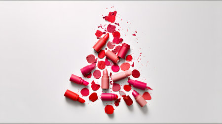 Lipstick swatches isolated on white background. Top view.
