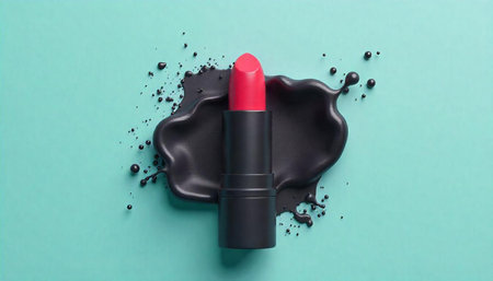 Vibrant lipstick product shot with textured paint splash backdrop