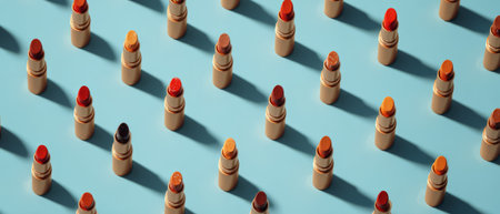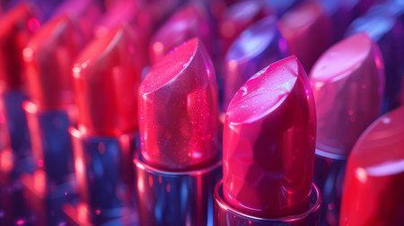 A stunning collection of vibrant lipsticks in various shades, ideal for beauty enthusiasts. Perfect for fashion shoots, cosmetic ads, and makeup tutorials.