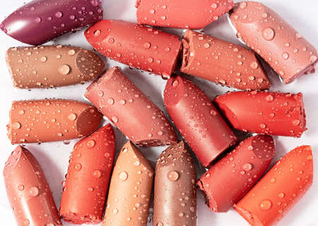 Abstract background with colorful lipsticks assortment.
