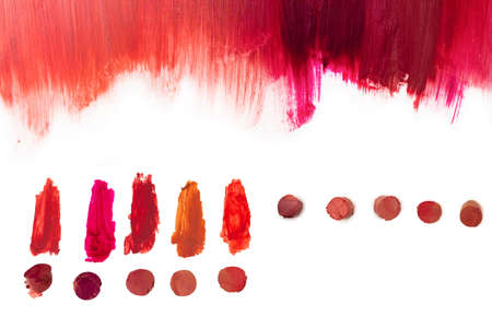 From light to deep color lipstick texture. Isolated on white. Copy space.