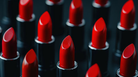 A stunning arrangement of vibrant red lipsticks showcases beauty and glamour, perfect for cosmetic marketing, beauty blogs, or product photography.