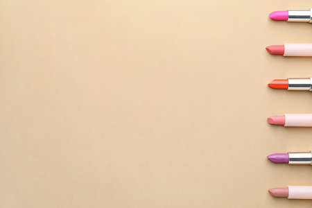 Beautiful lipsticks on color background