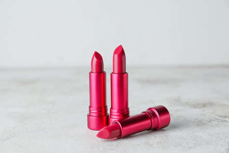 Lipstick in different colors on a light background