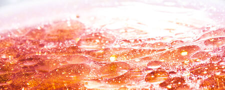 Abstract macro shot of clear gel with trapped air bubbles and swirling translucent forms, creating a dynamic...