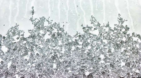 Water bubbles between metal and glass surface macro close up view