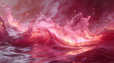 Emotional abstract expressionism in fluid horizontal composition with glowing bioluminescent lighting and passionate pink tones. Captures romantic intensity and dynamic wave motion, ideal for branding in wellness, romance, or creative industries, including wallpapers, apparel prints, and digital media backgrounds. Versatile for emotional marketing campaigns a... AI-generated digital illustration. AI-generated illustration.