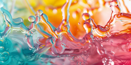 Lively abstract image of colorful rainbow water splashes and bubbles blending in a dynamic composition.