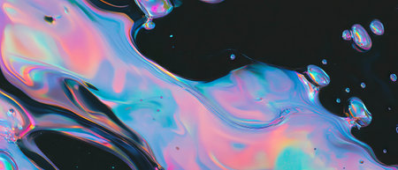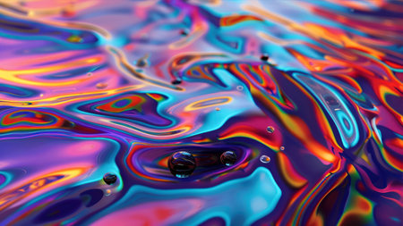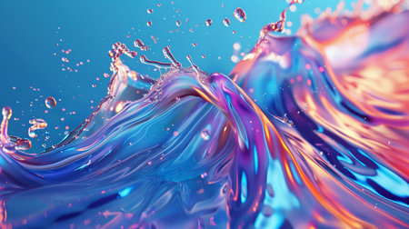 A background with vibrant colors and holographic texture displays a flowing liquid splash in various hues