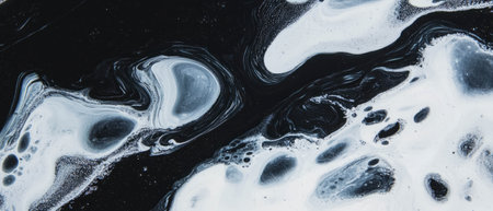 Marbled black ink patterns create a striking effect against a white background