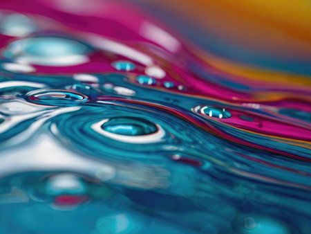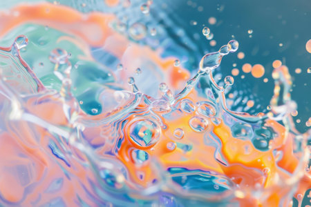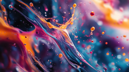 Stunning abstract image showcasing colorful liquid splashes and droplets with dynamic swirls, perfect for artistic projects and creative designs.