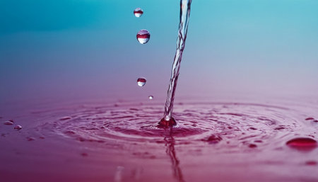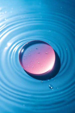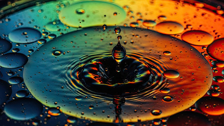 Vibrant water droplet impact, colorful ripples.
