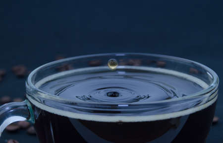 A drop of water is falling into a body of water. Concept of tranquility and peace