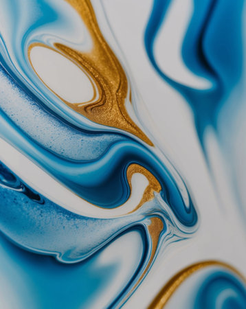 AI Generated. Blue and Gold Abstract Fluid Art Background