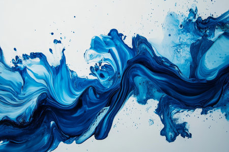 Abstract art with blue paint background, featuring liquid fluid strokes and grunge textures. A captivating blend of colors evoke a sense of movement and depth.