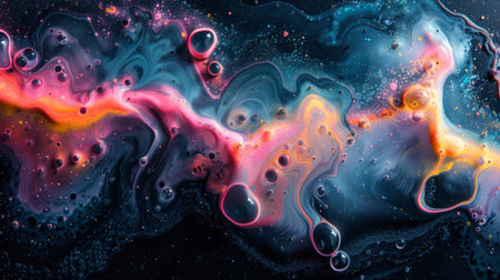 Liquid bubbles create colorful abstract patterns on a black background
