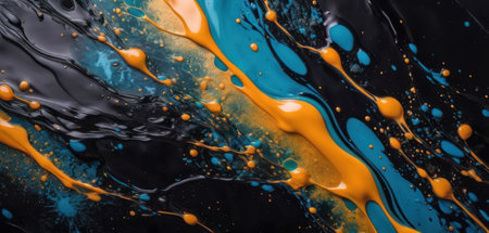 Abstract background of oil paint splashes in black and orange colors.